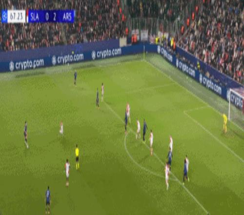 第67分钟,布拉格斯拉维亚门将出击失误,梅里诺头球破门完成双响,帮助阿森纳3-0锁定胜局。