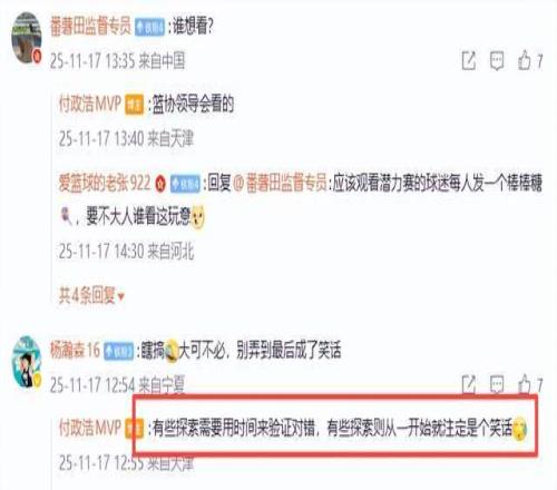 媒体人付政浩老师在与球迷互动时表示,“有些探索需要用时间来验证对错,有些探索则从一开始就注定是个笑话。”